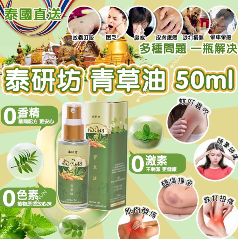 <S20895> ❤️‍🔥👏泰國 泰研坊 青草油 50ml 🍀👏🏻✅舒緩身體不適的自然良方,是令人驚奇的自然良方 泰國備受歡迎的外用保健產品,以其綠色的顏色和草本成分聞名。 🔸這種古老的配方源於泰國傳統醫學,被用於舒緩肌肉疼痛、關節炎和其他身體不適(如蚊蟲叮咬,鼻塞,皮膚痕癢,暈車暈船,跌打損傷等) 泰國青草油源於泰國的傳統藥草學,結合了多種天然草本植物提取物的力量。常見的成分包括薑黃、姜黃、香茅、檸檬草和薄荷等。這些植物都具有強大的舒緩和消炎特性,能夠緩解肌肉和關節不適。 ▶️功效和應用: 泰國青草油在很多方面都有用途。它可以幫助舒緩肌肉痠痛、扭傷和痙攣。許多運動員和身體活動愛好者使用它來加速肌肉康復和減輕運動引起的疼痛。對於患有關節炎和類似疾病的人來說,這種油也可以提供緩解。它的舒緩特性還可以用於紓解頭痛和減輕感冒症狀。 🔴使用方法🔴 只需將油輕輕按摩在患處上,直到完全吸收即可。對於肌肉和關節不適,可以每天使用數次。如果你感到疲倦或需要放鬆,也可以在身體其他部位按摩這種油。 🗓預計到貨日期:2月底 💢💢💢💢💢💢💢 <S20895> 泰國 泰研坊 青草油 50ml $65/支 AA $60/支(2支或以上)AA +2